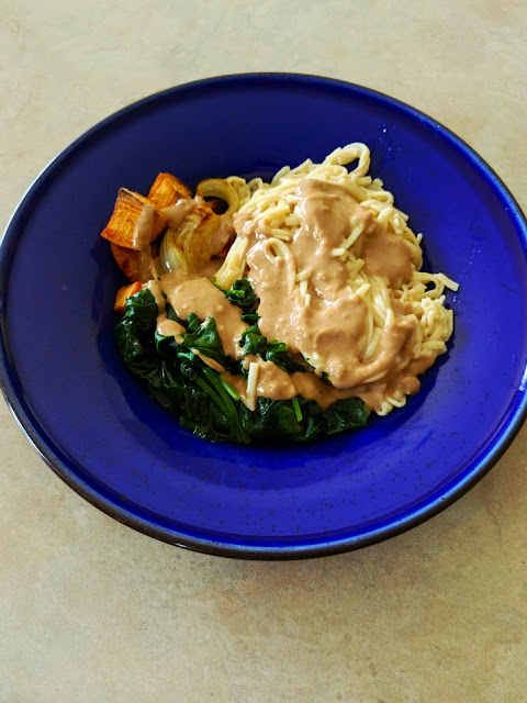 Toss the sauce with warm pasta and your choice of sautéed vegetables.